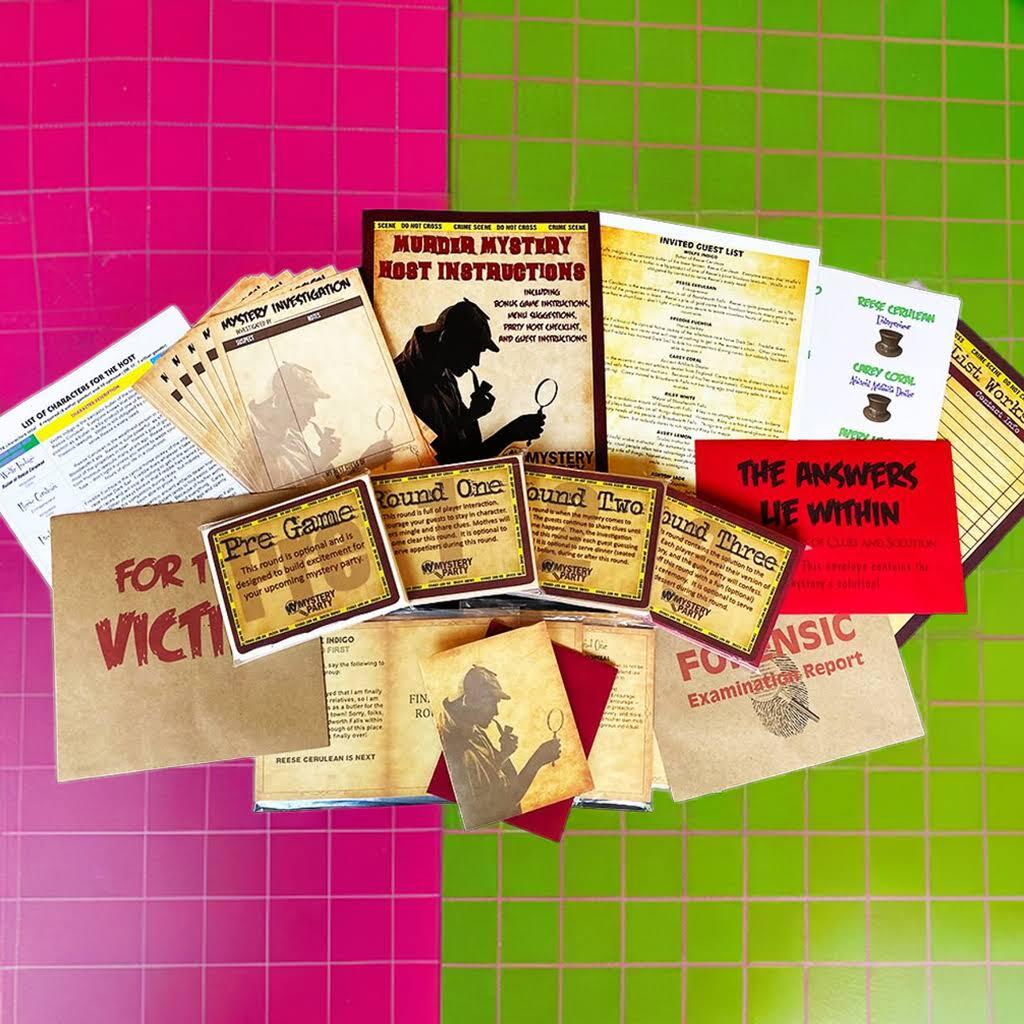 This is the boxed version - Party Ready Pack - the game materials will come to you, ready to go for your mystery party!